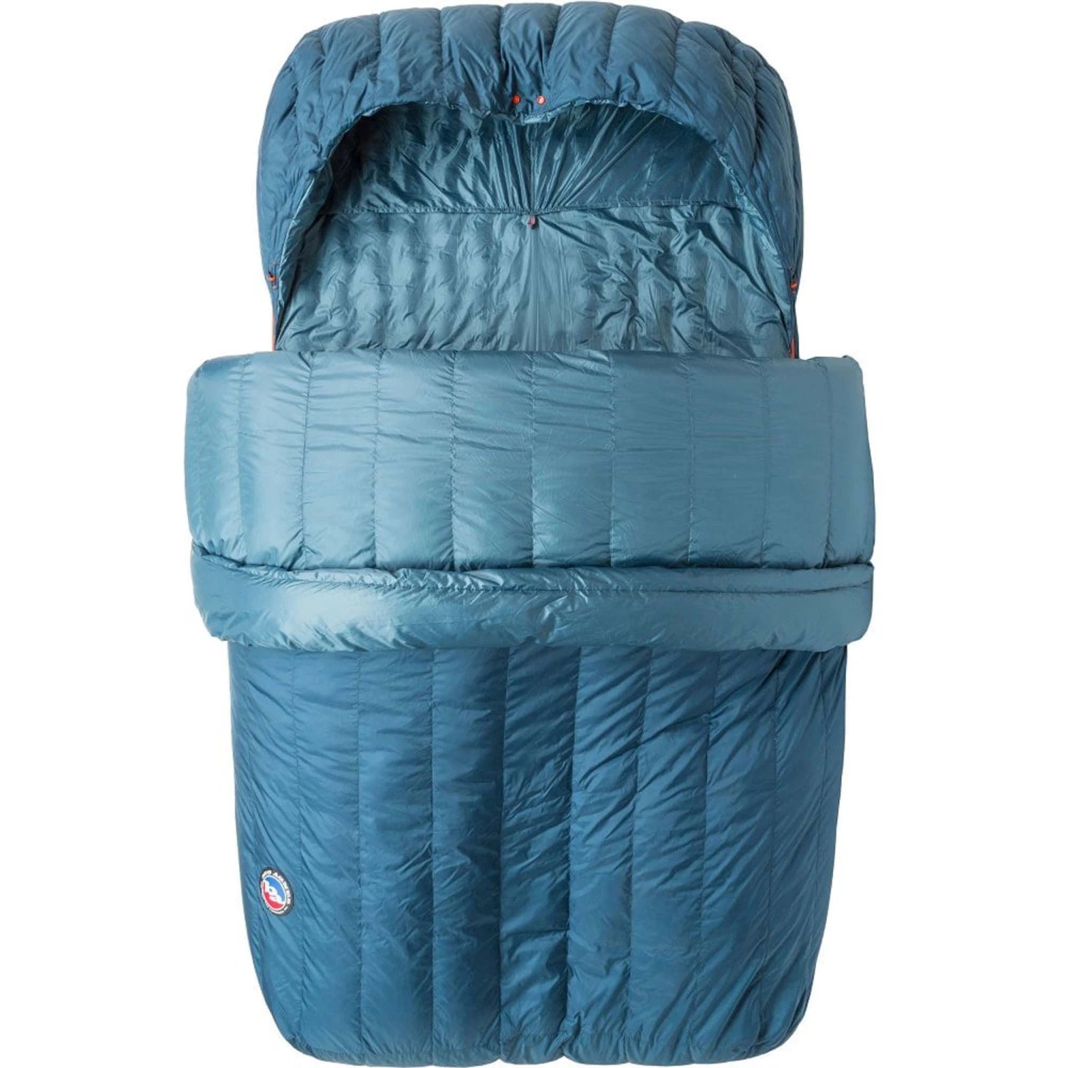Added features include a water-resistant shell to keep moisture at bay and a one-hand cinchable hood. Double zippers allow entry from either side or the option of zipping off the top layer completely to use it like a comforter.