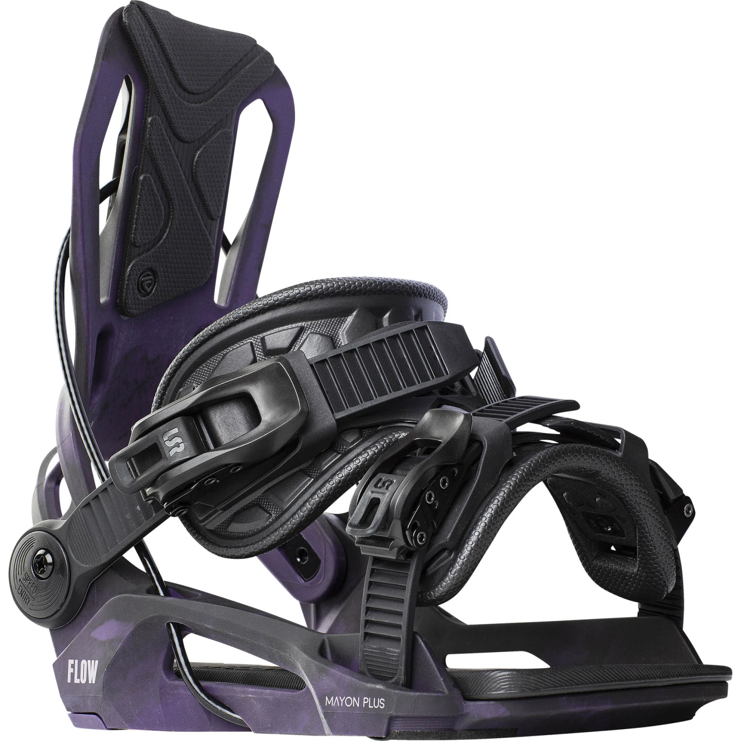 The Flow Mayon Plus women’s snowboard bindings are a great edition in the Flow binding range. With a basic chassis the same as the regular Mayon, the key differentiator is the ExoKush strap that features on many of Flow’s high-end models. Made from expanded EVA material, this strap is incredibly thick, comfortable and light, providing maximum control.