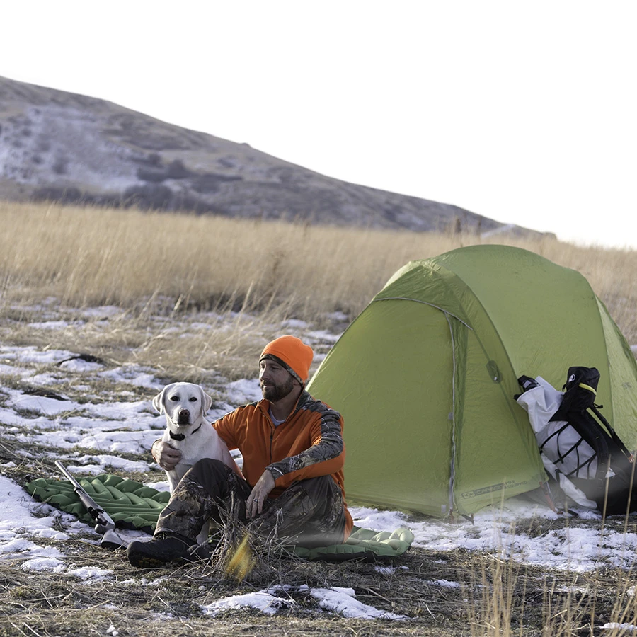 The Static V camping mattress features V-Chambered air pads that conform to your body while providing generous, lofted air pockets allowing sleepers to rest comfortably no matter their favoured sleeping position – be it side, stomach or back.