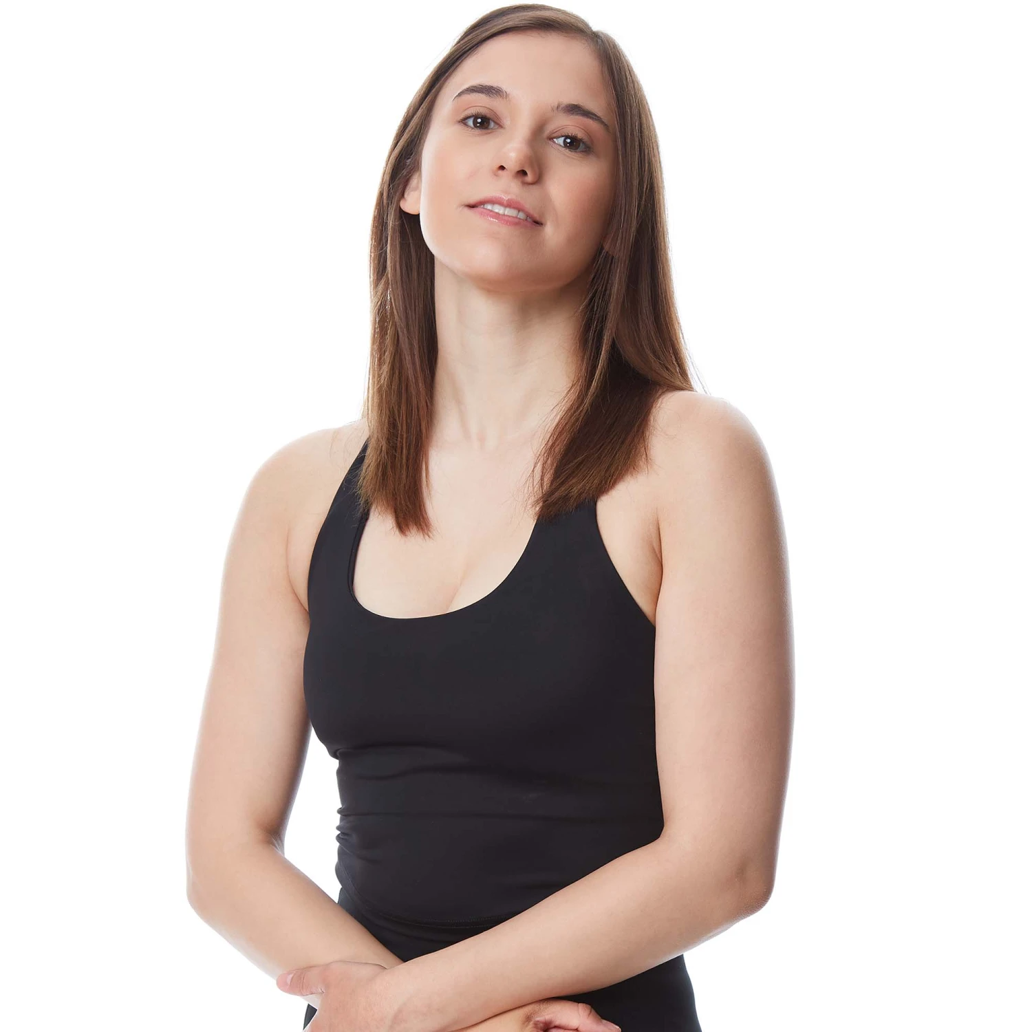 Design: High neck with wide cross straps