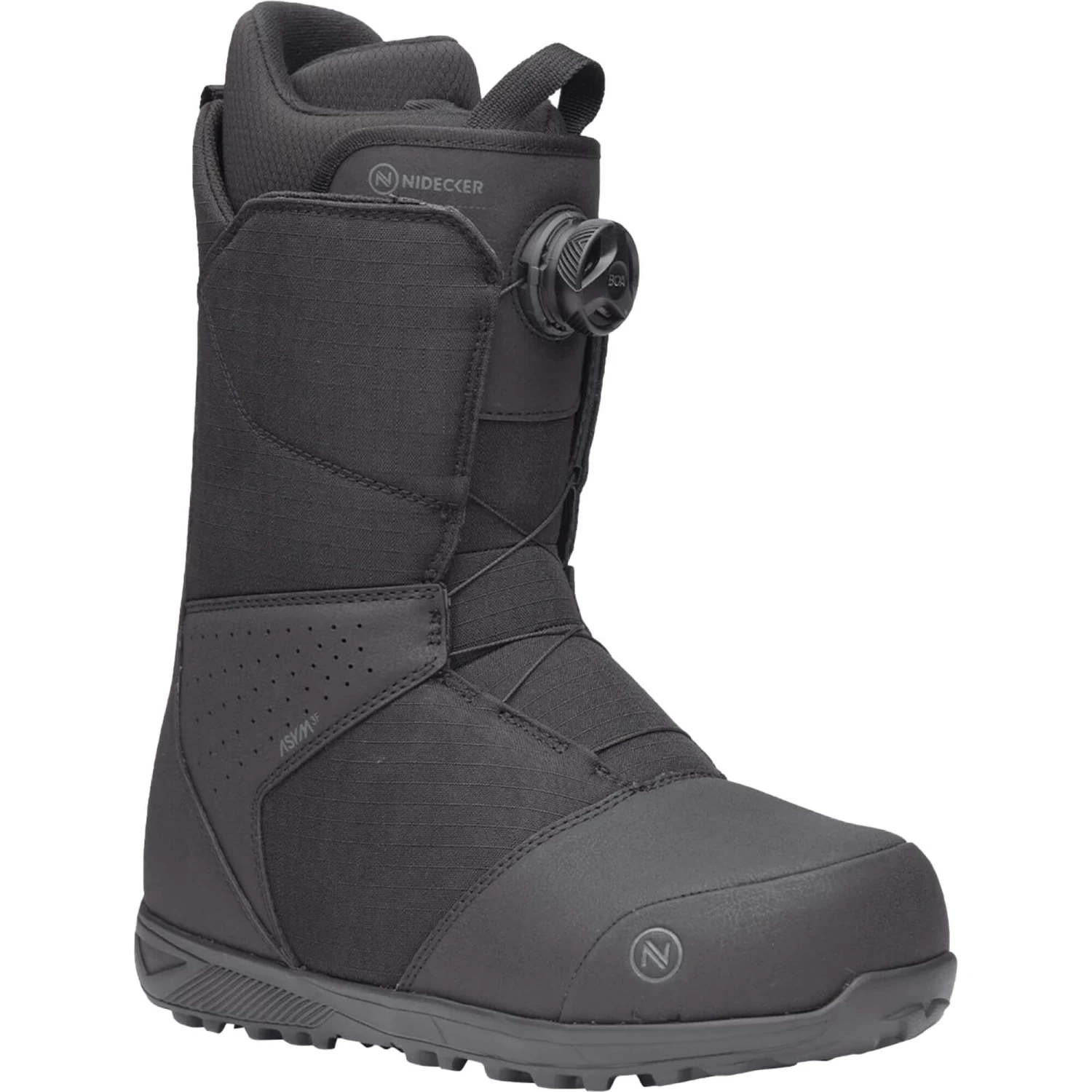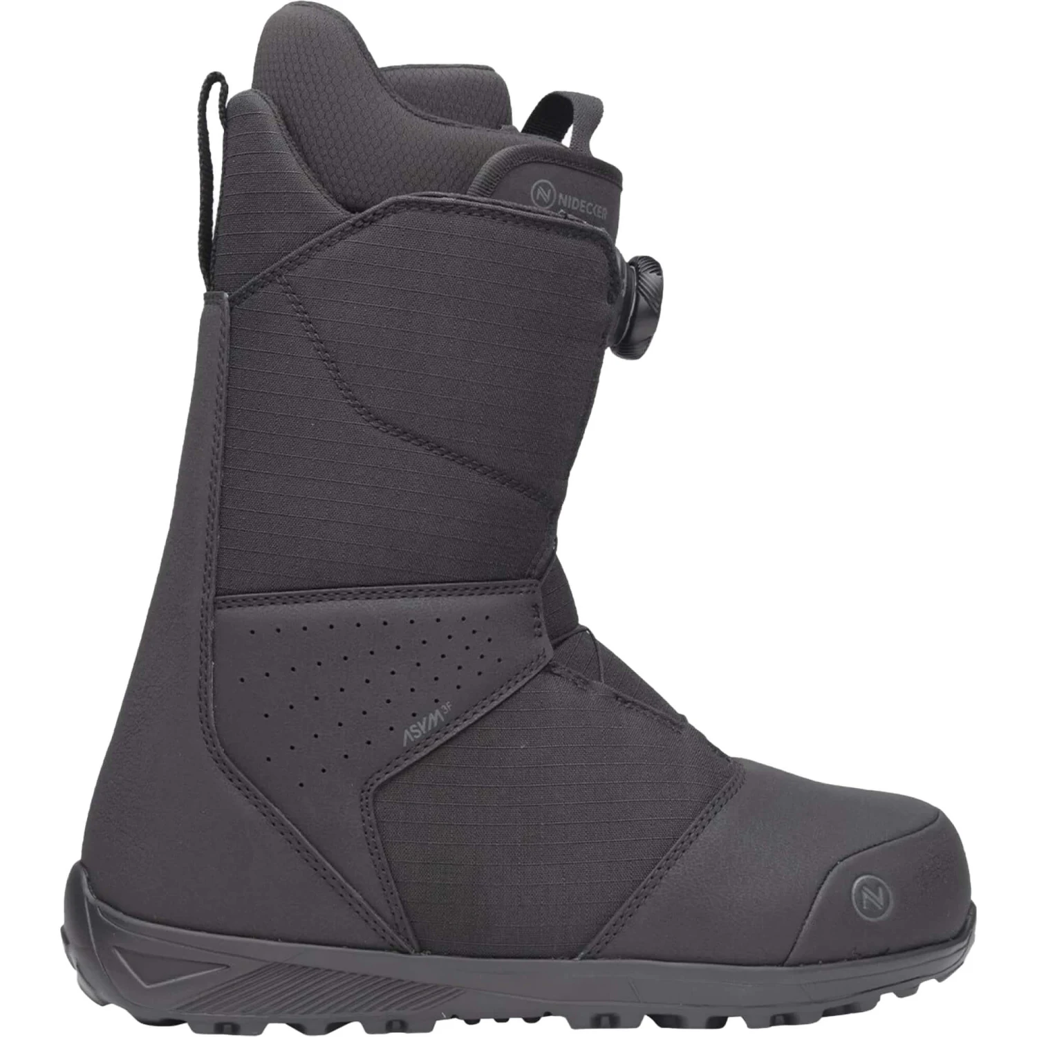 The upper section of the Sierra closes oh-so-quick and precisely via a single H4 Boa tongue dial, while the Boa’s TX3 textile laces allow Nidecker to drop even more weight, while also making the closure more durable yet still with a beautifully natural feel. Inside the boot, the heat-moldable Bronze Level Liner with Single Density Footbed gives you crazy levels of support, comfort and warmth. And if that’s not enough, the 1:1 lasting means there’s a specific shell, liner and footbed for every full and half size. For even more built-in-cosiness, the Sierra uses an asymmetrical shape so the boot will sculpt perfectly to your binding hi-backs to give you mega power transfer.