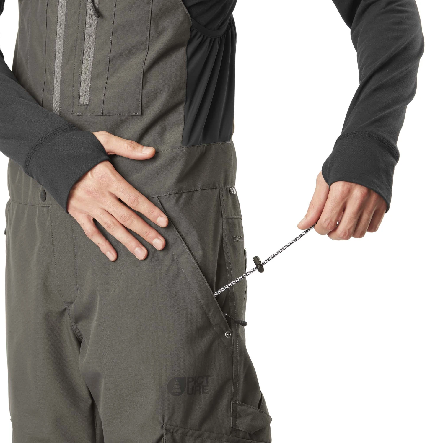 The Dryplay membrane has been coated with Pictures Teflon Ecoelite™ PFC free DWR coating which will still hold up after 10+ washes. The Testy pant also utilises a Coremax lining which keeps the heat in during the cold temperatures but also encourages moisture to wick away when heat builds up.